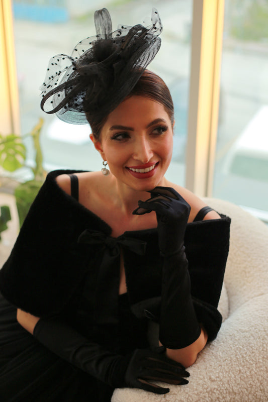 Dantelli Gelin Kepi Nikah Şapkası Ve Saten Uzun Gelin Eldiveni Kombin Set