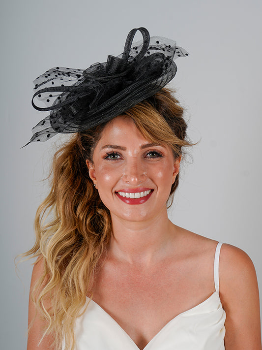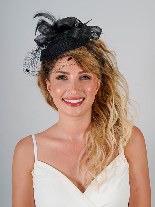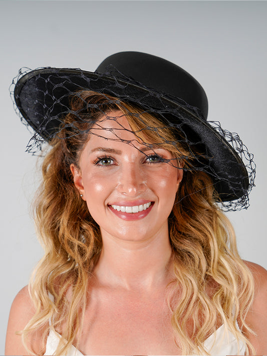 İndirimÖnü Tüllü Saten Şapka Siyah