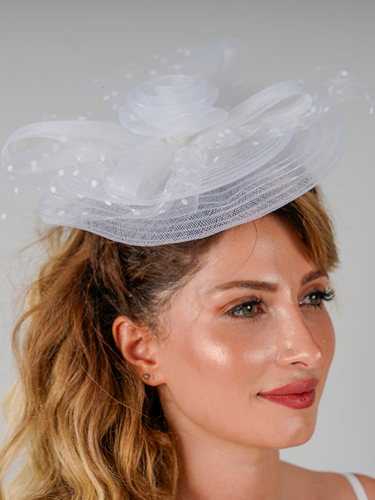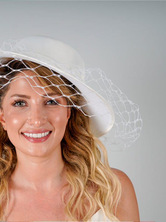 Önü Tüllü Saten Şapka Kırık Beyaz