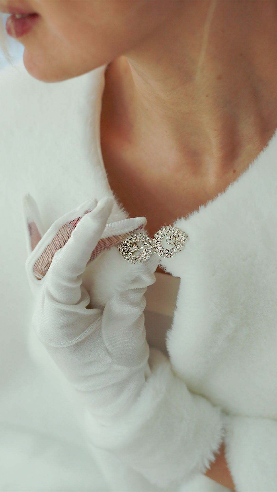Uzun Broşlu Kürk Etol Ve Kadife Kürklü Eldiven Kombin